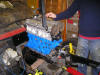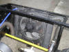 Custom alternator bracket using old LH engine mount, upside down on RHS of