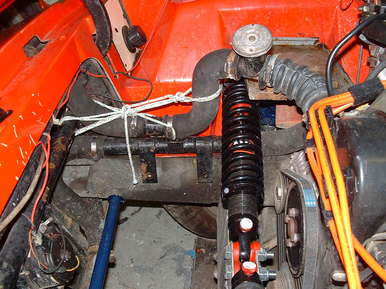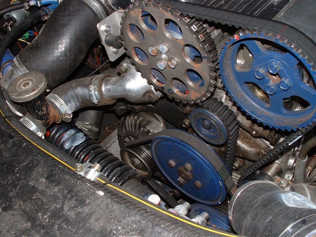 I have a variable nozzle turbo from Turbo Technics. This has vanes operated by a second actuator. The vanes are ‘closed’ at no boost and open fully at .6bar. The ‘closed’ vanes squirt the exhaust gas giving a very early spool up of the Turbo Boost is seen at 1650rpm building to the .6bar at 2100rpm and then up to wastegate pressure, or above, at 3200rpm. The car does not feel that quick with a thump of torque as the turbo progressively winds up – but the corners come very quick. At wastegate pressure of .8 bar I have 250 bhp and will have around 320bhp when the boost is upped. The only time there is any lag is when booting to flat out from a low throttle angle - which is still very smooth as the vanes feed the power in. I have had problems with the Turbo – no boost at large throttle angles but these have all been resolved – but I don’t know why some problems have disappeared. The ‘official’ Turbo Technics distributor local to me when ‘correcting’ my fitting of the turbo turned my recirculation dump valve backwards and then played with the boost valve map to again ‘correct’ the boost– leaking away from the backwards dump valve --- and then --- gave me a big bill!!! – paid as the excellent work done was only discovered later. Warning --- Go only to tuning people who you know and have unblemished reputations ----- Turbo Technics have been helpful – but have not so far accepted any responsibility for their – frankly incompetent distributor and agent (or paid the £250 bill) Final turbo point is that both the actuator for the wastegate and the vanes vibrate badly. I put rubber pipe on the wastegate rod and was advised to weld a weight onto the vanes actuator rod - I attached lead with a jubilee clip – more needed soon to damp the vibration – this fell off and is now epoxied – more to come? Cooling I initially had overheating. This may have been in part due to incomplete mapping having weak mixtures giving excessive heat. The intercooler is completely in front of the radiator - the best place but restricting and heating the airflow I fitted an air scoop to feed air from under the car and a flare to the rear of the bonnet to remove air – fitting both together I have no idea which of both works but the cooling is now fine. The underbonnet temperature while driving is 10degrees above ambient – but gets quickly to 60 when stopped. The scoop had to be strengthened as at over 90mph it hit the ground due to the downforce it generated – more than me standing on the centre of the scoop – at 75mm from the ground it also collects the tops of sleeping policemen - and where I live it scoops the tops from horse poo left in the centre of the road. Emerald and programmable ECUs The control over all aspects of the engine is superb, with a few extra comments. First – if the car is fast then mapping on the road is not possible – 90 mph + playing with a laptop + watching lambda readouts = dead – the car can be driven by someone else and some work done the speeds needed will affect the license of the driver very quickly. The only option is a rolling road with a good operator who also knows the management system being used well – otherwise you either have a Muppet who knows nothing about tuning – or someone who will charge xxxx per hour to learn the management computer program. A big difficulty is to make sure the new engine is all working correctly before paying for the rolling road – but how can you do that without bad mapping destroying the new engine? Second – A wideband lambda either plumbed in or temporary is essential to alter the fuelling accurately the information is essential for power area of the map to prevent weak mixtures melting things and for the cruise area to sip fuel. This piece of kit added to ears listening for the dreaded detonation (pinking) will enable the engine to be run safely – get some miles and checking done before the expensive rolling road. This control over every aspect of the engine gives a very smooth and easy drive with none of the spitting animal like behavior expected with tuned engines. The DIY Megasquirt systems do deserve a good look as with a wideband Lambda they can tune themselves - keeping down the rolling road costs. I am currently looking further at this option. They are also not expensive