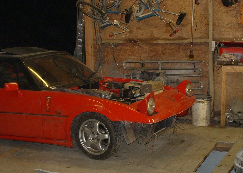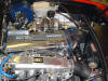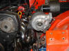 My solutions to these items follow plus the other changes I made I fitted a scrap DET and got emerald working before fitting the new engine. Manifold I bought an aftermarket stainless manifold from E-bay. I then cut at the block flange and turned the pipery upside-down and re-welded. While cheap and beautifully curved the quality of the mating of pipes to flanges was awful - before cutting off and turning around. A die grinder is needed to both clean off inside and mate to the block and turbo. This gives me a top mounted Turbo with enough space for a 2 ½” downpipe (just) Wiring Loom I stripped out the Sabre wiring keeping only the leads to various sensors as I have rewired for Emerald management. The wiring to the alternator, starter and oil pressure are the same. The DET has two or three air bypass valves and a tickover stepper sprouting out around the inlet manifold. These were junked as not required, but the stepper for cold tickover may be re- installed. I have also been able to junk the mass airflow meter which is not used with the Emerald system. Emerald uses a crankshaft sensor rather than the Nissan cam sensor. This was machined into the original front pulley, but the sensor was later moved to the cam pulley due to misfiring problems about 6200rpm. Pipework I have fitted an intercooler from a Volvo 740. This is fitted at an angle roughly where the original radiator sat. It has been slightly shortened to fit between the chassis rails and the end capping re- glassed into place. Convenient tapped holes exist in the chassis within the spare wheel bay that I have used for holding the radiator, behind the intercooler. I now have a can in the boot rather than a spare wheel and the battery also sits in the boot. Other bits With the top mount Turbo the inner wing needed alteration (hack out and re- glass into place) for the header tank and a direct pipe led to the void under the headlight for the air cleaner – watch and protect from water dripping around the headlight. What I should have done. 1. Most definite – stripped out and thrown away all of the original wiring including in the cockpit. Only keeping the wiring to the rear lights. –15+year old Reliant wiring is specifically designed to make you utter profanity at loud volume and throw things at the wall. 2. Duct the airflow to the radiator - now done and no cooling problems. The radiator is standard size SS1 with a triple rather than double gallery core – less cost than a new standard radiator from our specialist suppliers. 3. The crankshaft has a vibration at 6200rpm which knocked out the engine speed signal – I have re-located the engine speed sensor from the crankshaft to the cam and no further problems (see above) Turbo