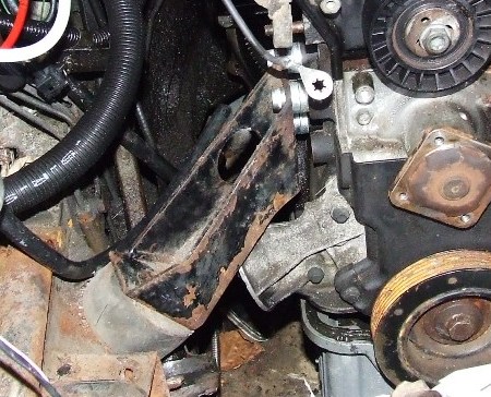 Whilst it mostly fits, there have been a few tweaks here and there; the inlet manifold still needs a tweak, and the engine mountings have been modified a little bit. The o/s mount still wants to hit the oil filter housing despite being spaced out by about 10mm at the moment. The n/s one had to have the alternator mounting removed to clear the water pump outlet; there looks to be enough space left under the inlet manifold to resite the alternator here instead, away from the turbo and manifold.
